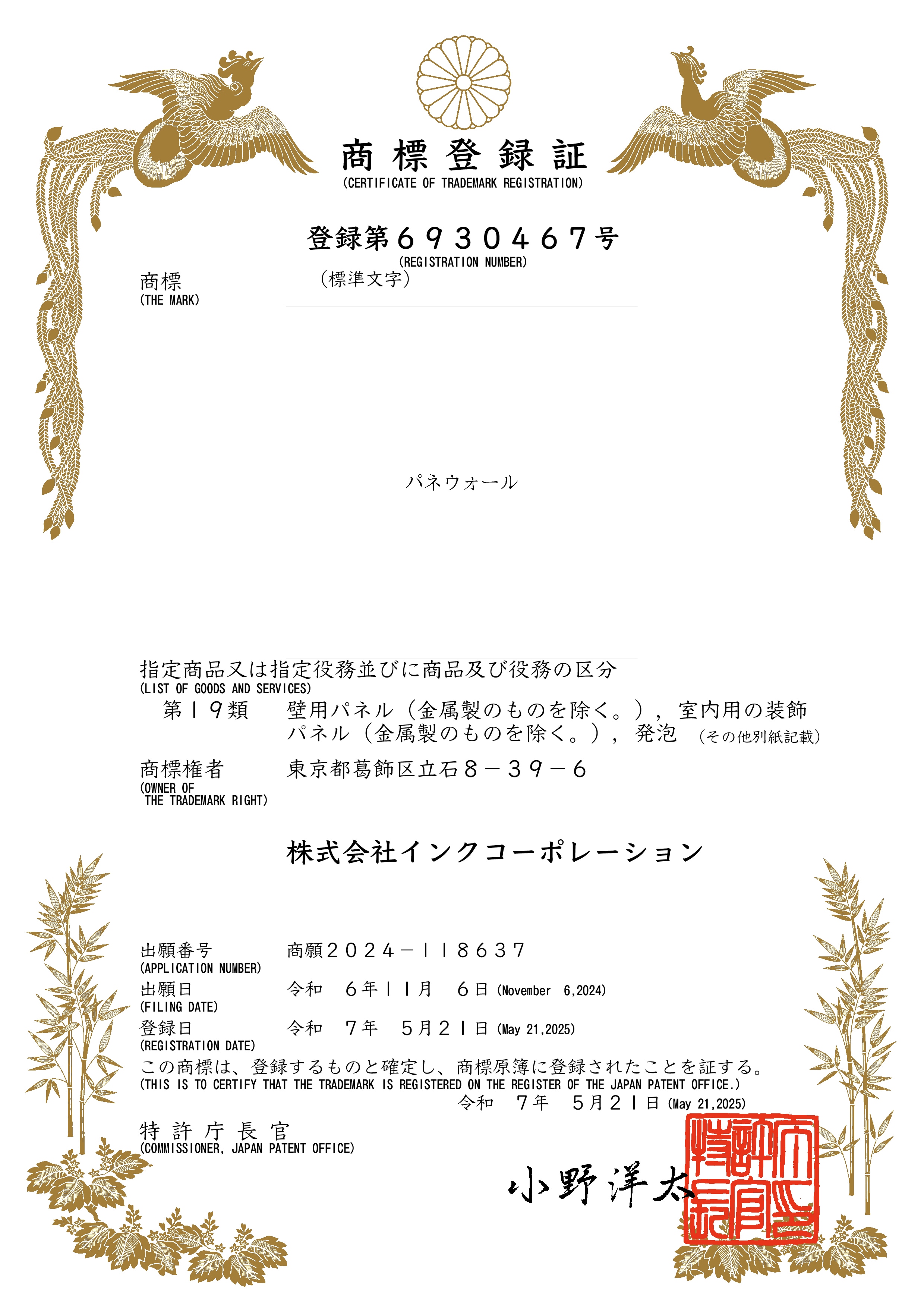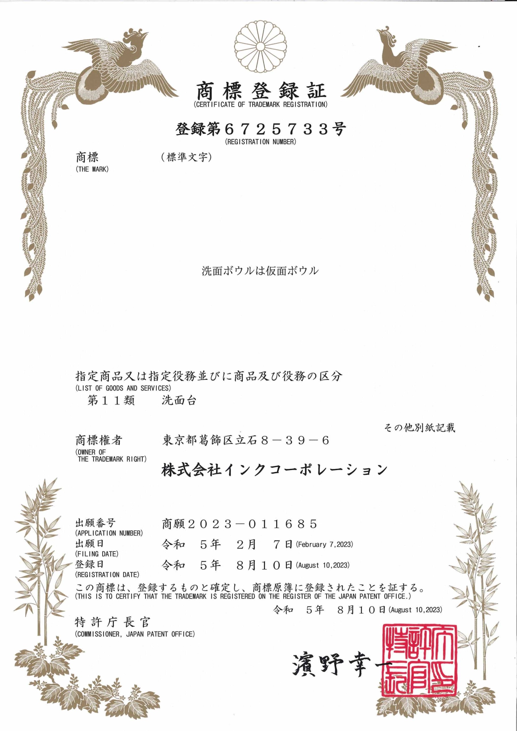 商標登録証