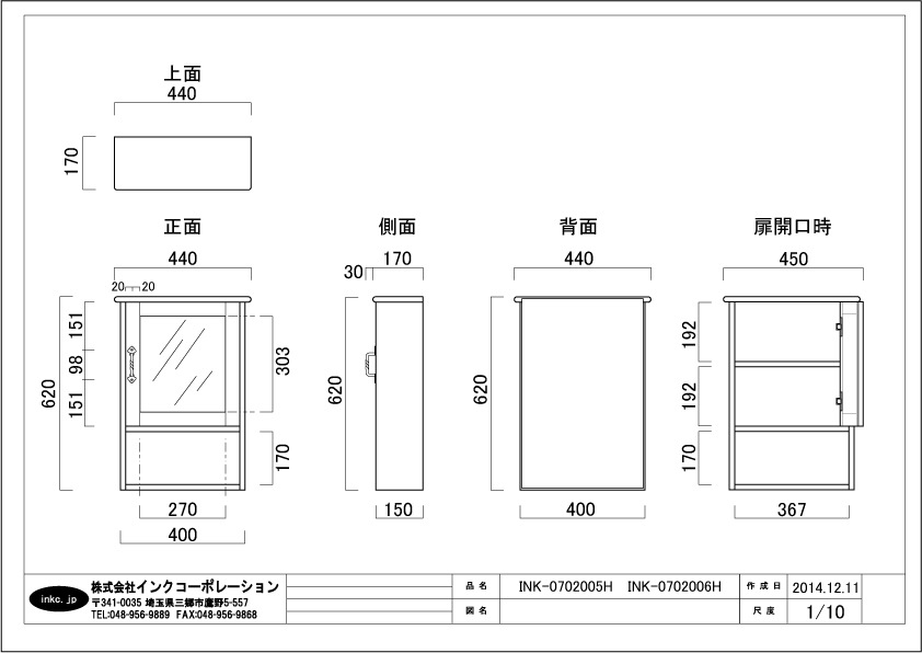 ミラーキャビネット:INK-0702006H