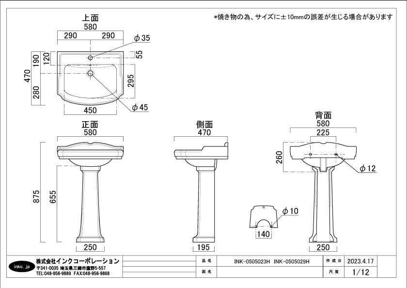 本体は組立式となっており、シンクと足部分は別梱包となっております。シンク部分は壁に取り付け、足部分はシンク接着面と床接着面をシリコンコーキングで固定します。