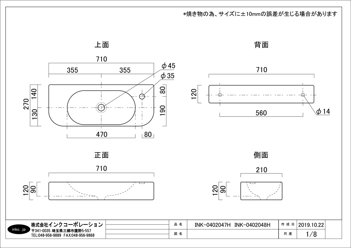 焼き物のため、置き型で施工する際にガタつきが生じる場合がございます。その場合、接地面をシリコンコーキング等で調節してください。