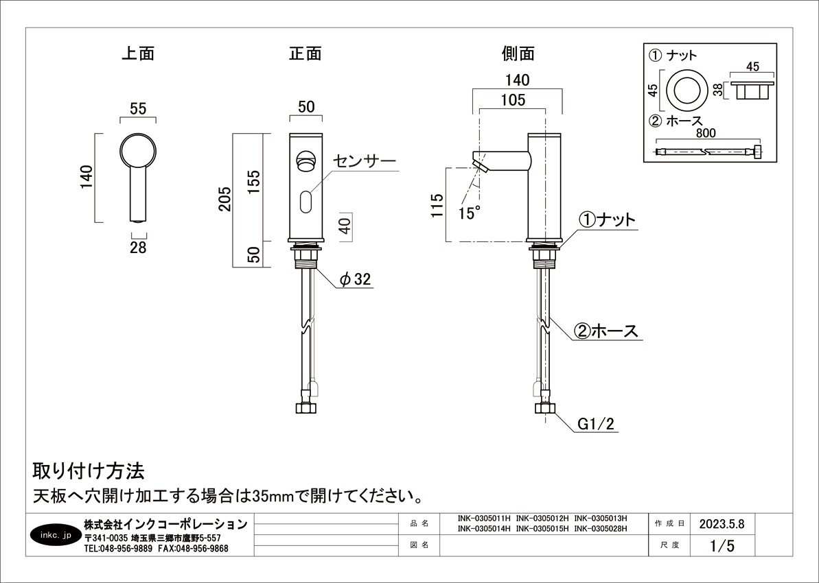 オプションの止水栓をお選び頂いた場合、ページに記載している各止水栓のデザインで