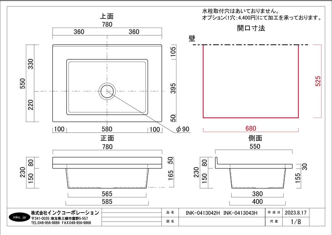 水栓・台は別途でのご購入となります。