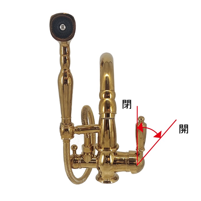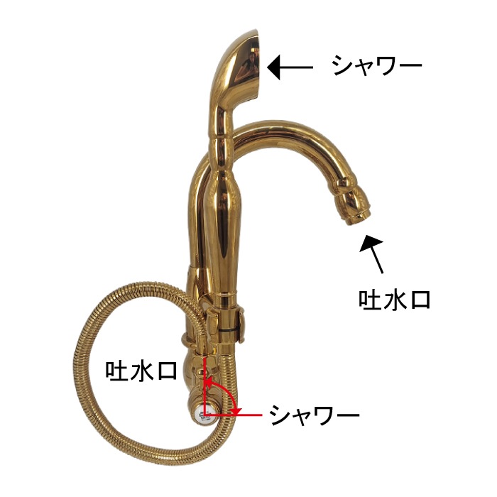 左側のレバーで吐水口とシャワーの切り替えが出来ます。