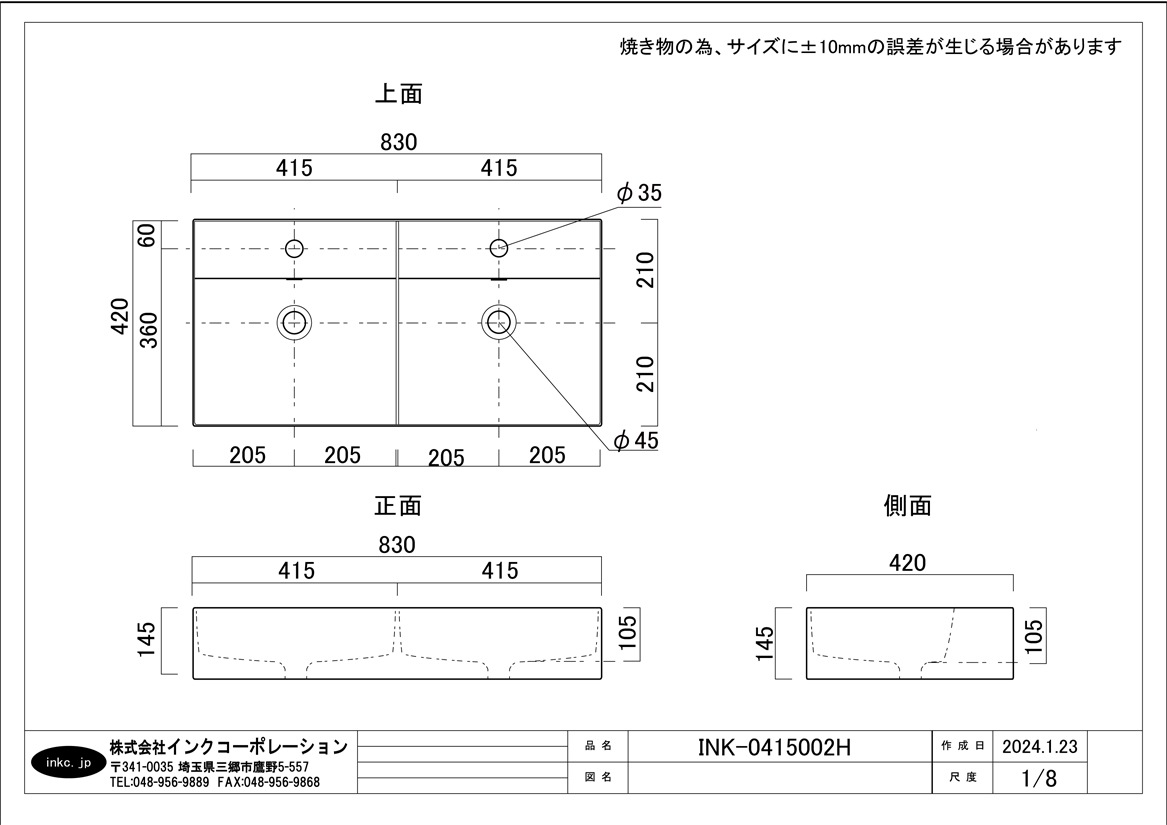 水栓、排水栓、排水トラップはカラーバリエーションでお選び頂いた色に統一致します。
