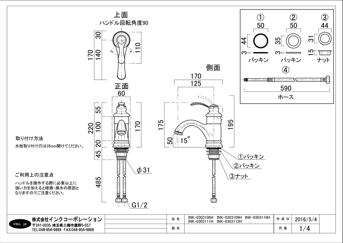 オプションの止水栓をお選び頂いた場合、ページに記載している各止水栓のデザインで選択したカラーバリエーションの止水栓を付属致します。