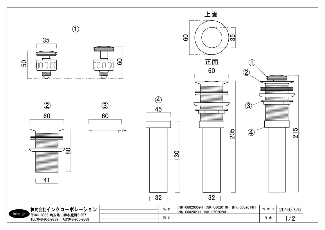 水栓、排水栓、排水トラップはカラーバリエーションでお選び頂いた色に統一致します。