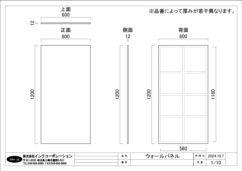 幅:600mm 高さ:1200mm 厚み:12mm