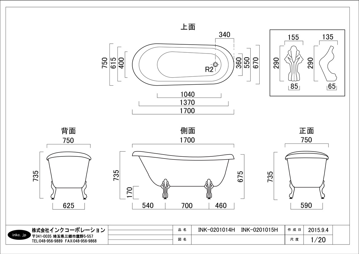 猫足・排水栓の色
