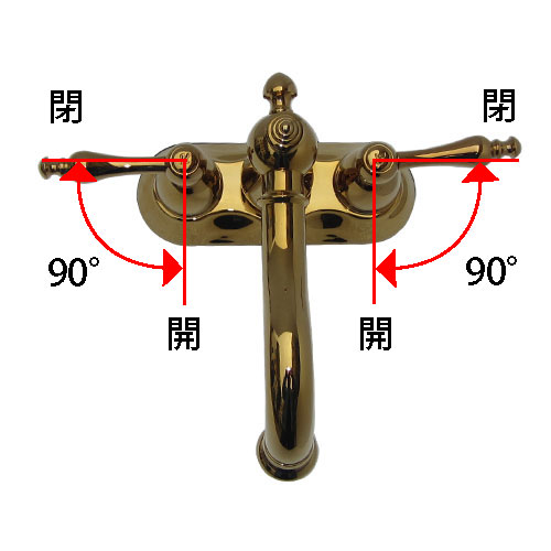 ハンドルを90°回すことで水を出したり止めたりすることができます。