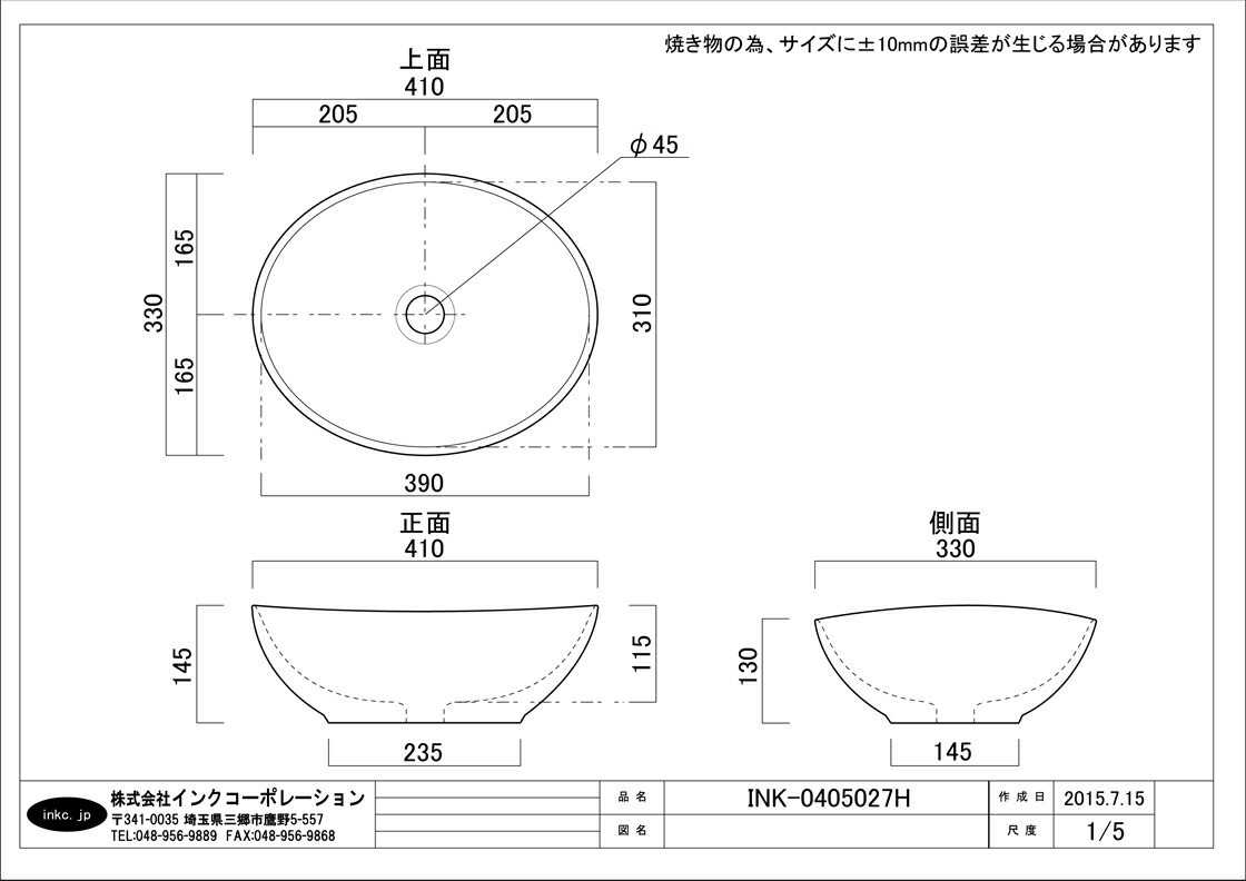 水栓・台は別途でのご購入となります。
