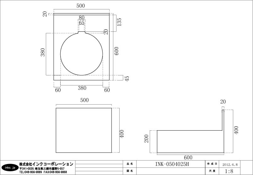 化粧台 幅:500mm 奥行き:600mm 高さ:400mm 陶器ボウル 幅:420mm 奥行き:420mm 高さ:190mm |